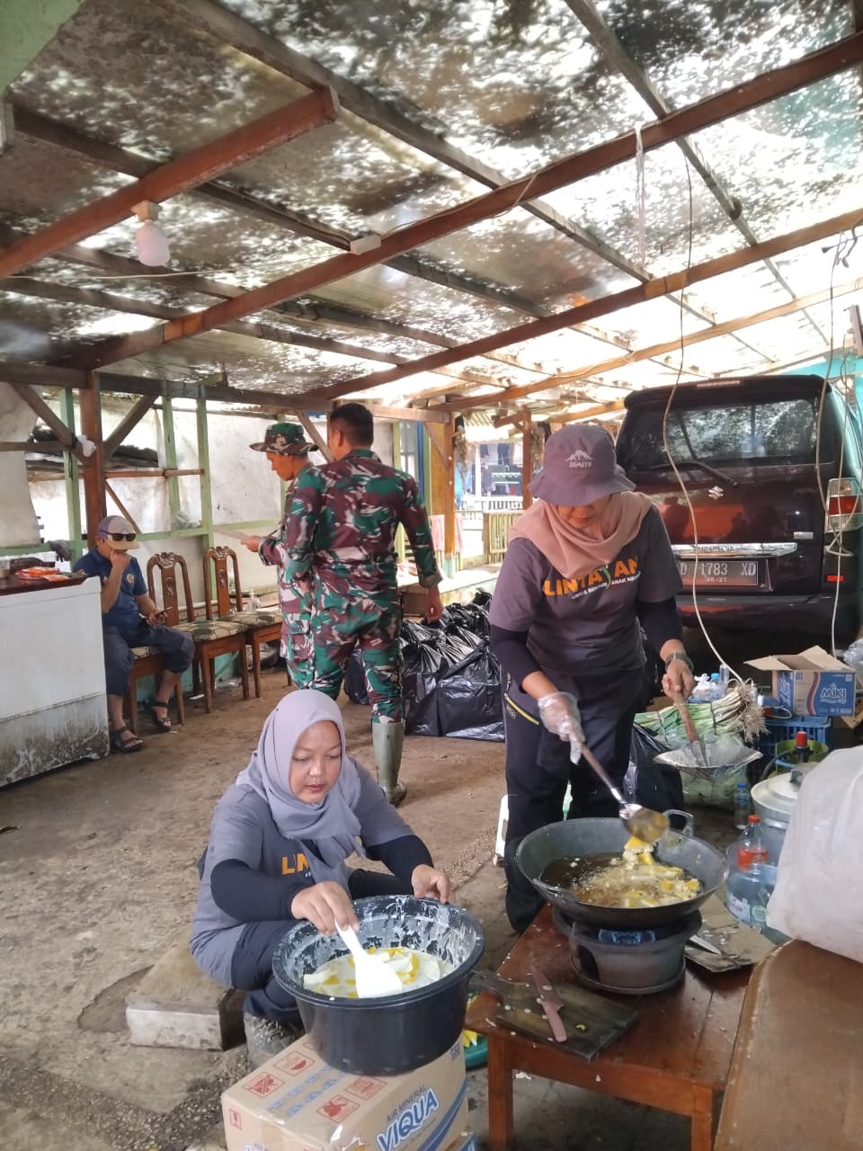 Penyediaan makanan dan minuman bagi relawan yang bertugas di area terdampak bencana sebagai dukungan logistik dasar selama masa tanggap darurat.